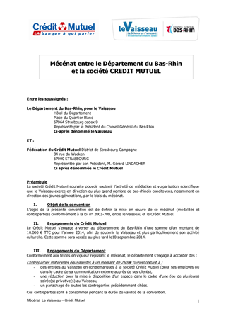 Convention de mécénat 2014 entre le Vaisseau et le Crédit Mutuel