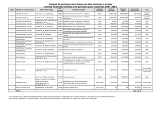 La fusion des communautés de communes de la Lauter, de la Plaine de la Sauer et du Seltzbach et de Seltz-Delta de la Sauer, a abouti au 1er janvier 2014 à la création de la nouvelle communauté de communes de la Plaine du Rhin. Au 31 décembre 2013 est arrivé à échéance le contrat de territoire du Canton de Seltz signé pour la période 2007-2013. Les communes signataires de ce contrat sont à présent susceptibles de bénéficier d'un contrat de 2ème génération pour la période 2014/2016. La programmation des opérations appelées à être financées par le Département est détaillée dans l'annexe financière « Volet Seltz » et jointe au rapport en vue de votre approbation. Par ailleurs, en date du 5 mai 2014, la commission permanente du Conseil Général du Bas-Rhin a validé la révision à mi-parcours de l’annexe financière concernant les collectivités du périmètre de l’ex-CDC de La Lauter. Cette annexe de 1ère génération dénommée « Volet Lauter » et jointe au présent contrat prendra fin le 31 décembre 2016. Les deux annexes constituent ainsi le contrat de territoire de la Plaine du Rhin.