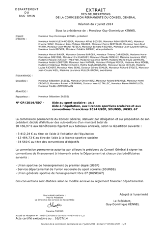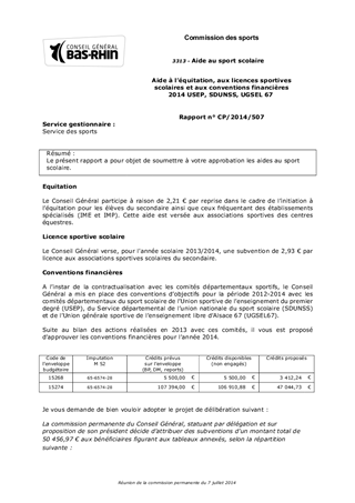 Aide à l’équitation, aux licences sportives scolaires et aux conventions financières 2014 USEP, SDUNSS, UGSEL 67