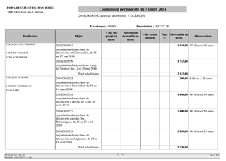 Le présent rapport porte sur la répartition de subventions au titre des classes de découverte