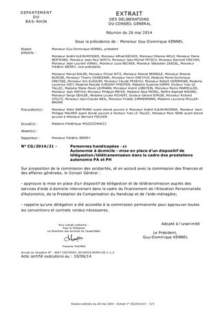 Confronté à l’augmentation prévisible des besoins compte tenu de la démographie, et aux enjeux financiers, notamment au travers du versement de l’APA, et afin d'apporter la solution la mieux adaptée aux Bas-rhinois concernés, le département du Bas-Rhin a engagé une réflexion prospective sur l’utilisation des Technologies de l’Information et de la Communication (TIC) dans la gestion de la dépendance et pour favoriser le maintien à domicile. Cette démarche appelée TIC & Santé puis Innovation pour l’autonomie, approuvée par délibération le 15 décembre 2008, doit répondre à de multiples objectifs : - Définir comment les TIC peuvent améliorer le service aux personnes âgées ou dépendantes, - Soutenir des projets et initiatives innovantes sur ces questions - Participer à la construction d’une filière économique d’excellence - Contribuer à l’aménagement du territoire départemental. Différentes actions ont ainsi été engagées pour concrétiser cette volonté. Un point d’étape en est fait dans ce rapport. De plus, et dans ce cadre, le Conseil Général en charge des prestations de perte d'autonomie, souhaite mettre en place un suivi des prestations pour assurer un contrôle de l'effectivité des aides. Il est ainsi proposé dans le présent rapport la mise en place d'un dispositif de télégestion et de télétransmission auprès des services d'aide à domicile sur l'ensemble des prestations du maintien à domicile (APA, PCH, aide ménagère).
