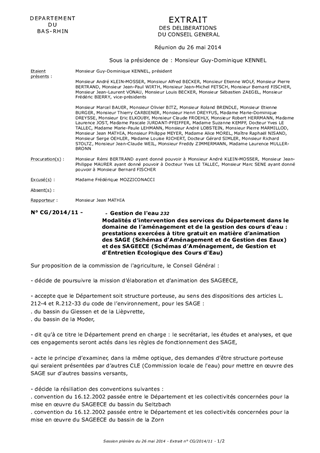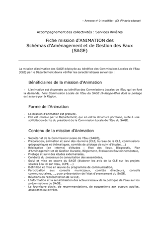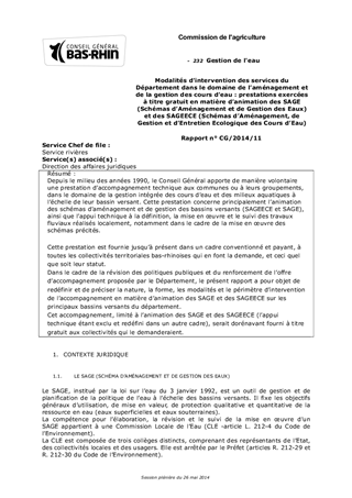 Modalités d’intervention des services du Département dans le domaine de l’aménagement et de la gestion des cours d’eau : prestations exercées à titre gratuit en matière d’animation des SAGE (Schémas d’Aménagement et de Gestion des Eaux) et des SAGEECE (Schémas d’Aménagement, de Gestion et d’Entretien Ecologique des Cours d’Eau)
