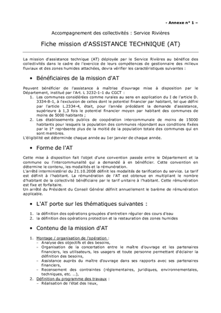 Modalités d’intervention des services du Département dans le domaine de l’aménagement et de la gestion des cours d’eau : prestations onéreuses en matière d’assistance technique dans le domaine de l’eau