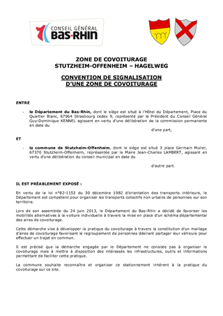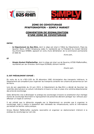 Convention de signalisation de zones de covoiturage