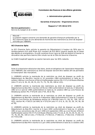 Le présent rapport concerne une demande de garantie d’emprunt présentée par la SCI Chanoine Spitz et une demande de mainlevée des restrictions au droit de disposer sollicitée par l'ABRAPA