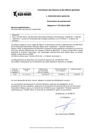 Pour l’année 2014, les Dernières Nouvelles d’Alsace reconduisent l’opération « Grands reporters » ouvert à l’ensemble des collèges alsaciens, sur le thème « le dessin de presse».