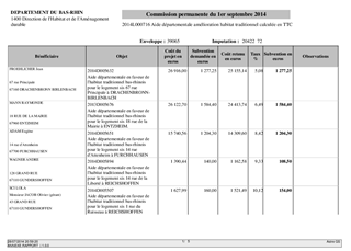 Le présent rapport concerne la demande d'aide financière de propriétaires privés occupants et bailleurs dans le cadre des aides versées par le Département au titre de sa politique volontariste en faveur de l'habitat traditionnel bas-rhinois et de l'amélioration de l'habitat privé, en complément des subventions de l'ANAH (agence nationale de l'habitat). A ce titre, 72 dossiers sont présentés dans les tableaux annexés au rapport.