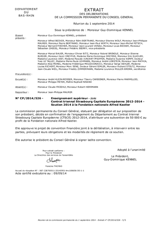 Contrat triennal Strasbourg Capitale Européenne 2012-2014 - Soutien 2014 à la Fondation nationale Alfred Kastler