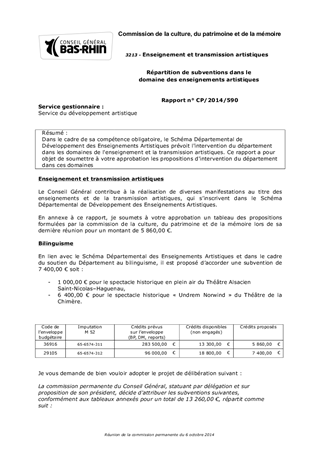 Dans le cadre de sa compétence obligatoire, le Schéma Départemental de Développement des Enseignements Artistiques prévoit l'intervention du département dans les domaines de l'enseignement et la transmission artistiques. Ce rapport a pour objet de soumettre à votre approbation les propositions d'intervention du département dans ces domaines