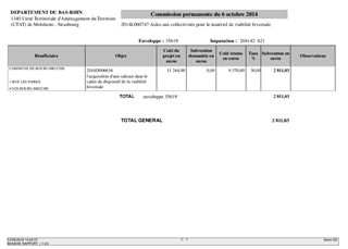Le présent rapport a pour objet l'attribution de subventions à la commune de Bourg Bruche pour l'acquisition d'équipements servant à la viabilité hivernale.