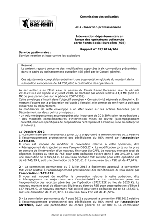 Le présent rapport concerne des modifications apportées à six conventions présentées dans le cadre du cofinancement européen FSE géré par le Conseil général. Ces ajustements comptables entraînent une augmentation globale du montant de la subvention européenne de 24 730,48 € à destination des opérateurs.