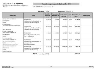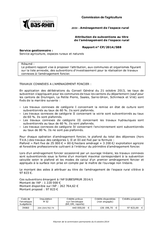 Le présent rapport vise à proposer l’attribution, aux communes et organismes figurant sur la liste annexée, des subventions d’investissement pour la réalisation de travaux connexes à l’aménagement foncier.