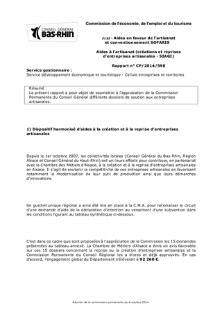 Le présent rapport a pour objet de soumettre à l'approbation de la Commission Permanente du Conseil Général différents dossiers de soutien aux entreprises artisanales.