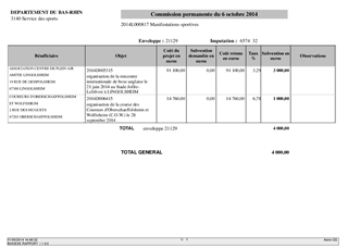 Le présent rapport a pour objet de soumettre à votre approbation les aides au sport de masse.