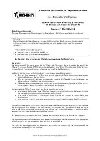 Dans le cadre de la politique en faveur de l'immobilier d'entreprises, il est proposé à la commission permanente l'approbation de trois subventions pour les dossiers suivants : - l'hôtel d'entreprises de Saverne - le commerce de proximité de Mollkirch - le commerce de proximité d'Alteckendorf.