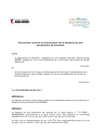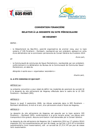 Convention de délégation pour l'organisation d'un transport à Brumath Convention avec la communauté de communes du Kochersberg et de l'Ackerland relative à la desserte d'un site périscolaire Convention avec la communauté de communes Sauer-Pechelbronn relative à la desserte d'un site périscolaire