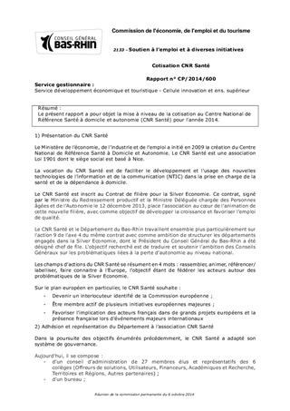 Le présent rapport a pour objet la mise à niveau de la cotisation au Centre National de Référence Santé à domicile et autonomie (CNR Santé) pour l’année 2014.