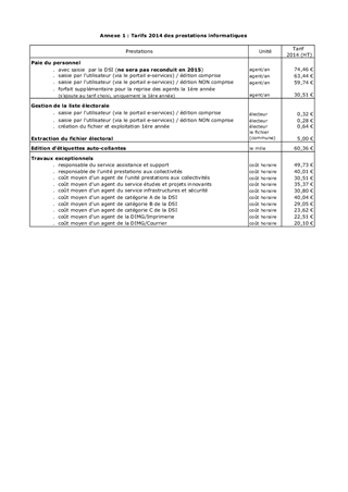 Tarifs 2014 des prestations assurées par la Direction des systèmes d'information du Département