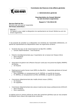Ce rapport a pour objet la désignation de représentants du Conseil Général au sein de divers organismes.
