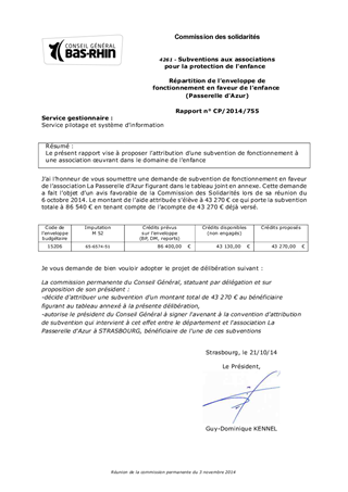 Le présent rapport vise à proposer l’attribution d’une subvention de fonctionnement à une association œuvrant dans le domaine de l’enfance