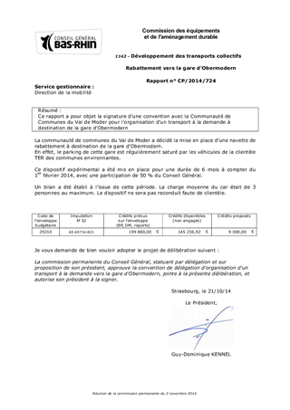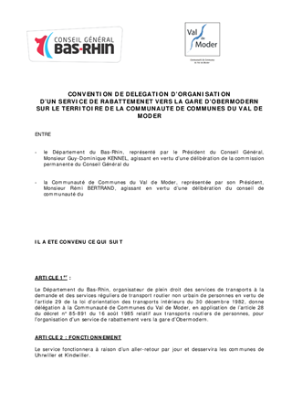 Ce rapport a pour objet la signature d'une convention avec la Communauté de Communes du Val de Moder pour l'organisation d'un transport à la demande à destination de la gare d'Obermodern