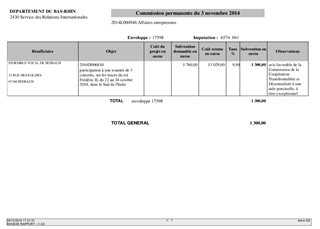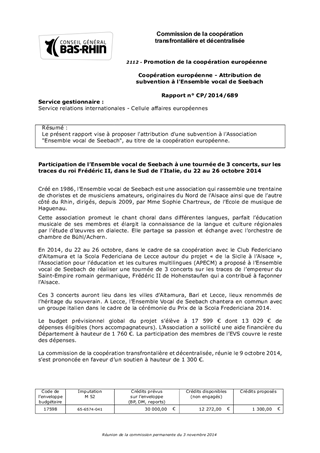 Le présent rapport vise à proposer l'attribution d'une subvention à l'Association "Ensemble vocal de Seebach", au titre de la coopération européenne.