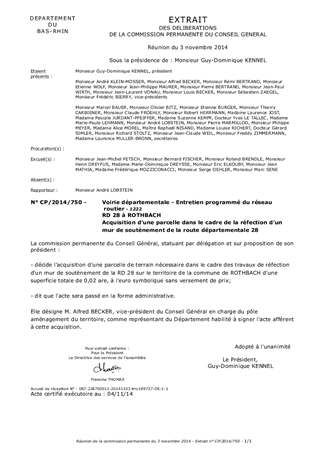 RD 28 à ROTHBACH Acquisition d'une parcelle dans le cadre de la réfection d'un mur de soutènement de la route départementale 28
