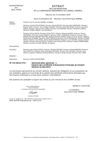 Cession des certificats d'économies d'énergie du Conseil Général du Bas-Rhin