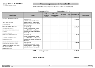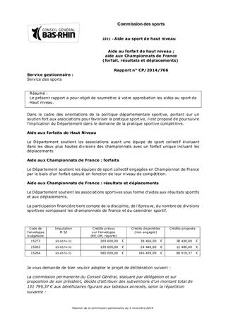 Le présent rapport a pour objet de soumettre à votre approbation les aides au sport de Haut niveau.
