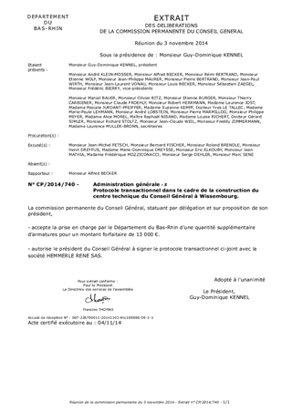Protocole transactionnel dans le cadre de la construction du centre technique du Conseil Général à Wissembourg.