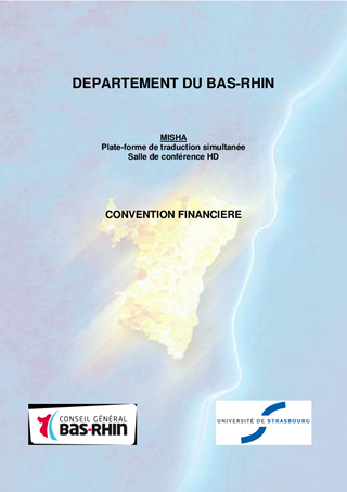 Le Contrat de Projets Etat Région 2007-2013 prévoit dans son volet "Recherche" un financement dédié à la recherche en Sciences Humaines et Sociales (SHS). Le présent rapport a pour objet de confirmer le solde du soutien de la collectivité départementale au projet d'aménagement de plate-forme de traduction simultanée et du passage en Haute Définition de la salle de conférence de la Maison Interuniversitaire des Sciences de l'Homme-Alsace (MISHA).