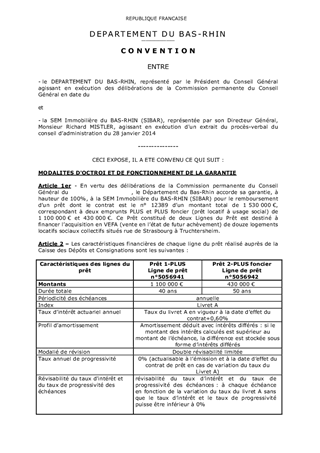 Le présent rapport concerne : Deux demandes de garantie présentées par : 1) la SEM Immobilière du Bas-Rhin (SIBAR) 2) la SA d’HLM NOUVEAU LOGIS DE l’EST-Groupe SNI dans le cadre d’une convention d’objectifs approuvée par la commission permanente du Conseil Général pour la mise en œuvre de la politique départementale de l’habitat 3) une demande de maintien de garantie suite à une renégociation du taux d’intérêt d’un emprunt réalisé par la Société Coopérative d’HLM Habitat de l’ILL