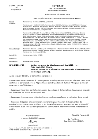 Très haut débit Alsace Mise en oeuvre du schéma directeur territorial d'aménagement numérique (SDTAN).