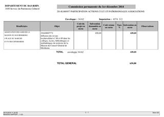 Le présent rapport a pour objet de soumettre à votre approbation les propositions d’intervention du Département au titre de l’aide aux actions culturelles et patrimoniales concernant les associations et les communes. Cette aide vise prioritairement à soutenir les sociétés d’histoire et d’archéologie locales dans l’acquisition et la diffusion d’ouvrages ainsi qu’à l’organisation de manifestations à vocation culturelle et patrimoniale.