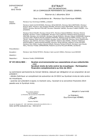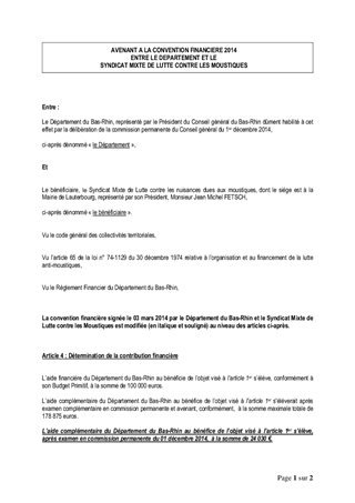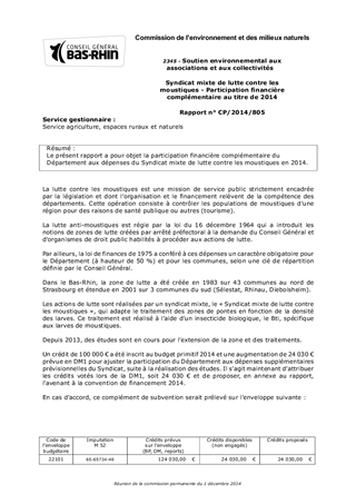 Le présent rapport a pour objet la participation financière complémentaire du Département aux dépenses du Syndicat mixte de lutte contre les moustiques en 2014.