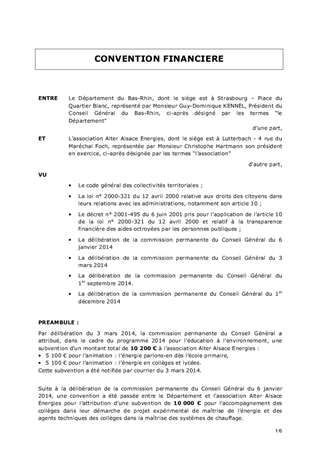 Il est proposé de passer une convention financière avec l’Association Alter Alsace Energies, afin de préciser les modalités de versement de la subvention de 10 200 € qui lui a été attribuée par délibération de la commission permanente du 3 mars 2014, dans le cadre du programme 2014 d'éducation relative à l'environnement.