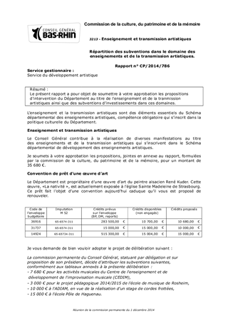 Le présent rapport a pour objet de soumettre à votre approbation les propositions d'intervention du Département au titre de l'enseignement et de la tranmission artistiques ainsi que des subventions d'investissements dans ces domaines.