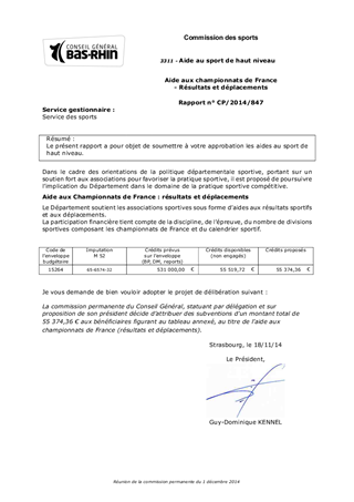Le présent rapport a pour objet de soumettre à votre approbation les aides au sport de haut niveau.