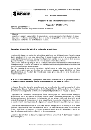 Le présent rapport a pour objet de soumettre à votre approbation l’attribution de deux bourses de recherche scientifique, dans le cadre du dispositif de soutien particulier aux travaux de recherche liés à l’histoire de l’Alsace.
