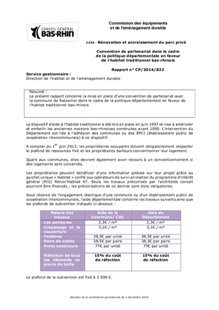 Le présent rapport concerne la mise en place d'une convention de partenariat avec la commune de Ratzwiller dans le cadre de la politique départementale en faveur de l'habitat traditionnel bas-rhinois.