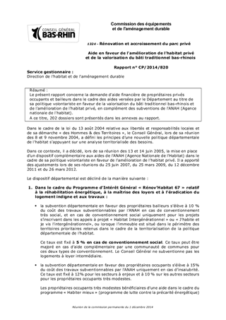 Le présent rapport concerne la demande d'aide financière de propriétaires privés occupants et bailleurs dans le cadre des aides versées par le Département au titre de sa politique volontariste en faveur de la valorisation du bâti traditionnel bas-rhinois et de l'amélioration de l'habitat privé, en complément des subventions de l'ANAH (Agence nationale de l'habitat). A ce titre, 202 dossiers sont présentés dans les annexes au rapport.