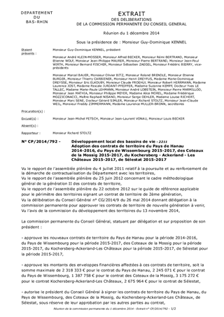 Adoption des contrats de territoire du Pays de Hanau 2014-2016, du Pays de Wissembourg 2015-2017, des Coteaux de la Mossig 2015-2017, du Kochersberg - Ackerland - Les Châteaux 2015-2017, de Sélestat 2015-2017