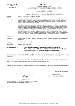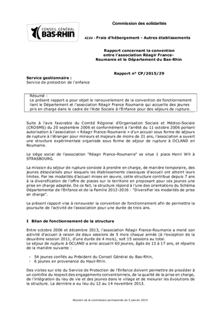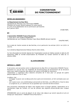 Rapport concernant la convention entre l’association Réagir France-Roumanie et le Département du Bas-Rhin