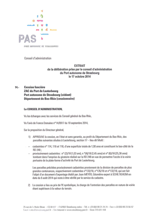 Acquisition de parcelles appartenant au domaine public du Port Autonome de Strasbourg sur la commune de LAUTERBOURG