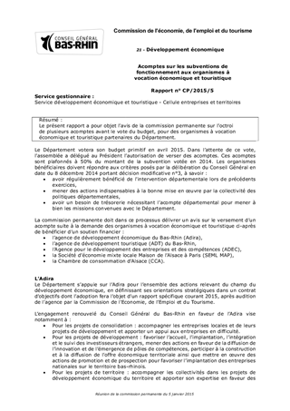Le présent rapport a pour objet l’avis de la commission permanente sur l’octroi de plusieurs acomptes avant le vote du budget, pour des organismes à vocation économique et touristique partenaires du Département.