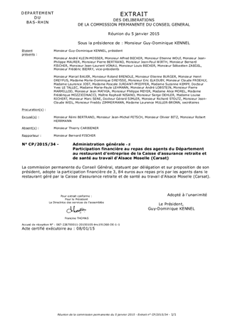 Participation financière au repas des agents du Département au restaurant d'entreprise de la Caisse d'assurance retraite et de santé au travail d'Alsace Moselle (Carsat)