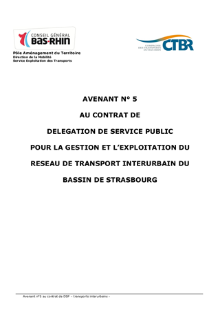 Avenant n°5 au contrat de délégation de service public avec la Compagnie des Transports du Bas-Rhin
