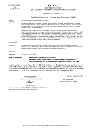 Avances financières 2015 aux structures en charge de l'accompagnement professionnel des bénéficiaires du RSA