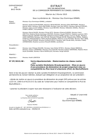 Piste cyclable Hindisheim/Krautergersheim - Mise en œuvre d’une procédure de déclaration de projet emportant mise en compatibilité du Plan local d’urbanisme (PLU) de Bischoffsheim