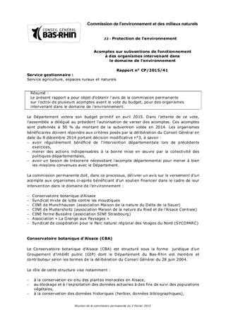 Le présent rapport a pour objet d'obtenir l'avis de la commission permanente sur l'octroi de plusieurs acomptes avant le vote du budget, pour des organismes intervenant dans le domaine de l'environnement.